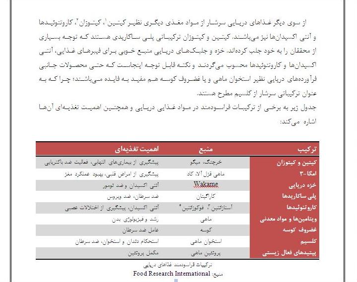 غذاهای دریاییبه دلیل تنوع شگفت انگیز در اجزای تشکیل دهنده و همچنین